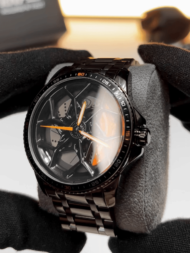 Ein innovatives Design mit vollständiger Drehbewegung, inspiriert von der Eleganz und Dynamik der Felge des Autos deiner Träume. Ein einzigartiges Accessoire, das niemals unbemerkt bleibt!