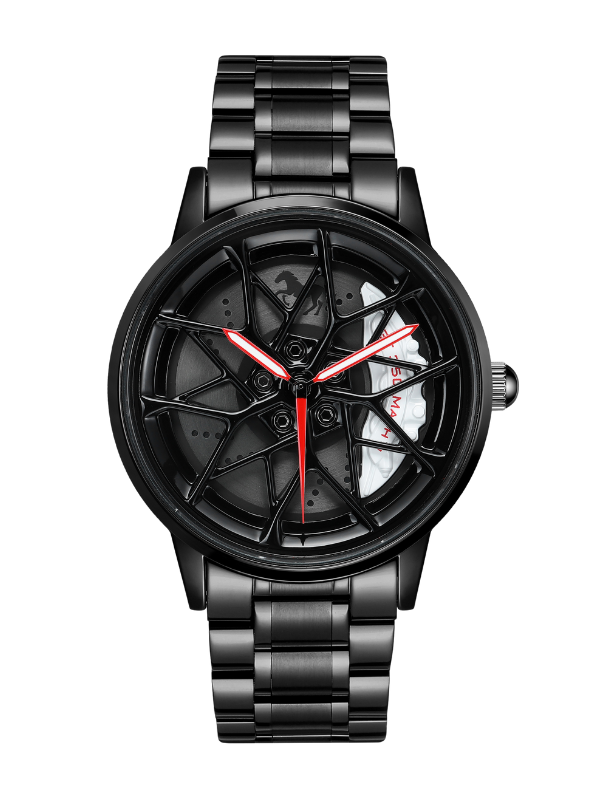 Ein innovatives Design mit vollständiger Drehbewegung, inspiriert von der Eleganz und Dynamik der Felge des Autos deiner Träume. Ein einzigartiges Accessoire, das niemals unbemerkt bleibt!